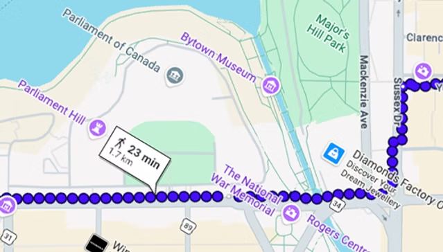 The parade departs from the Supreme Court of Canada (301 Wellington Street) at 12:00 PM, travels east along Wellington Street past Parliament Hill, crosses the Rideau Canal, and continues to Sussex Drive. It then turns north on Sussex to York Street before heading east into the ByWard Market.